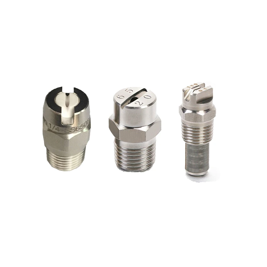 Features | 1. Flat spray pattern ideal for use in spray headers or manifolds; 2. Tapered-edge spray pattern to ensure even coverage when multiple nozzles are used in a series 3.Wide choice of materials |