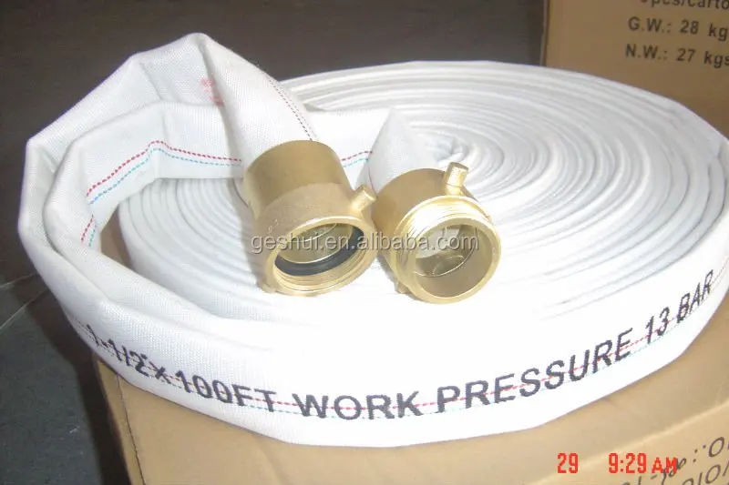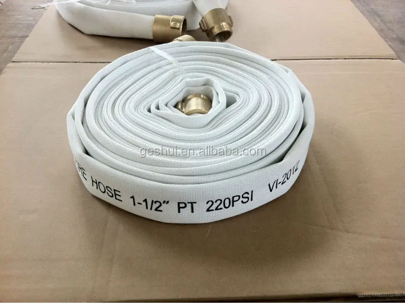 The abrasion resistant pvc lining fire hose 100mm high tenacity polyester yarn and polyester filament in plain or twill weaving.Inner lining is PVC