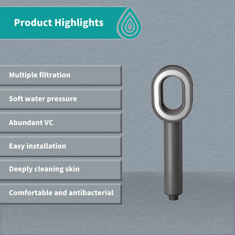 Product features | 1.Multiple filtration 2.Soft water pressure 3.abundant VC 4.Easy installation 5.Deeply cleaning skin 6.Comfortable and antibacterial |