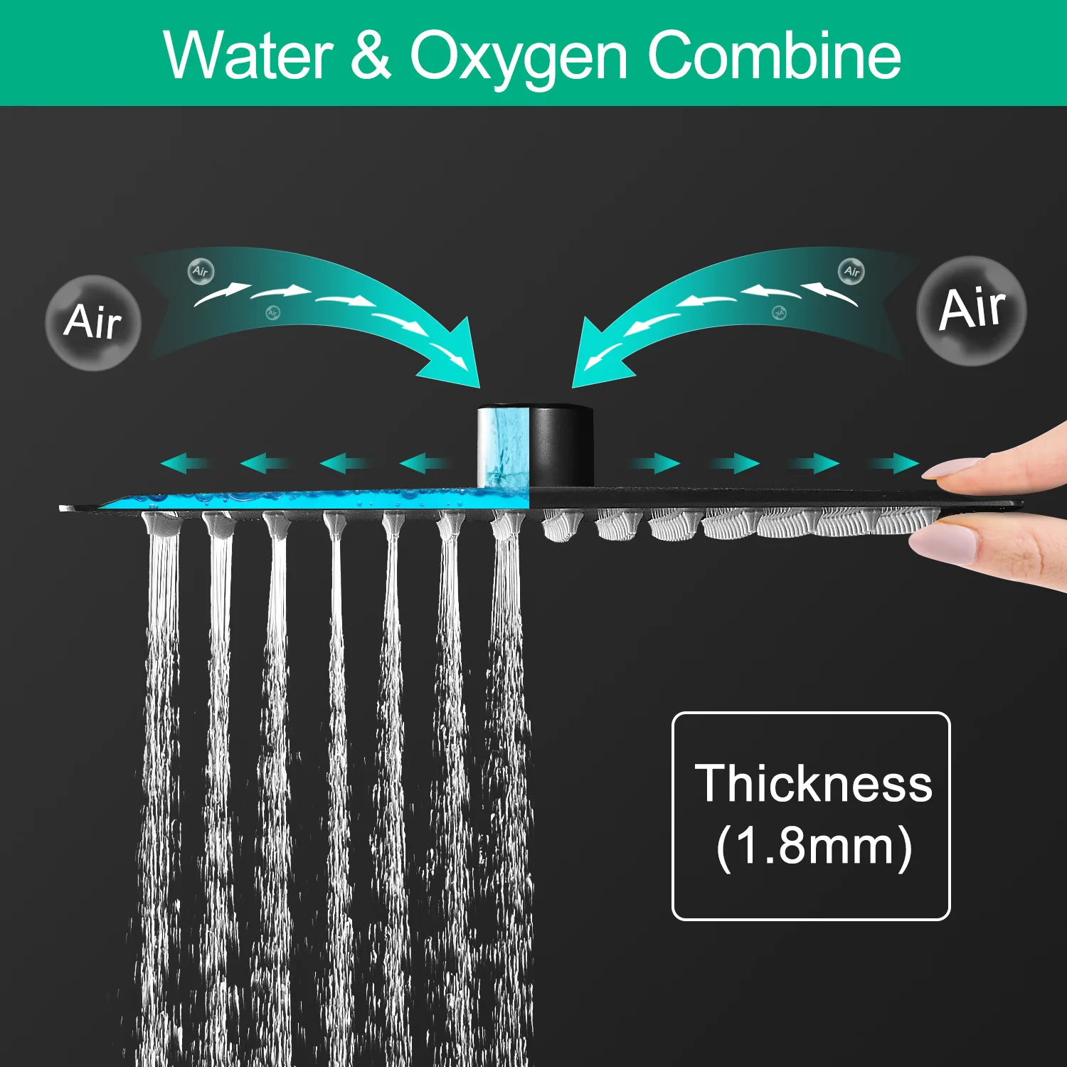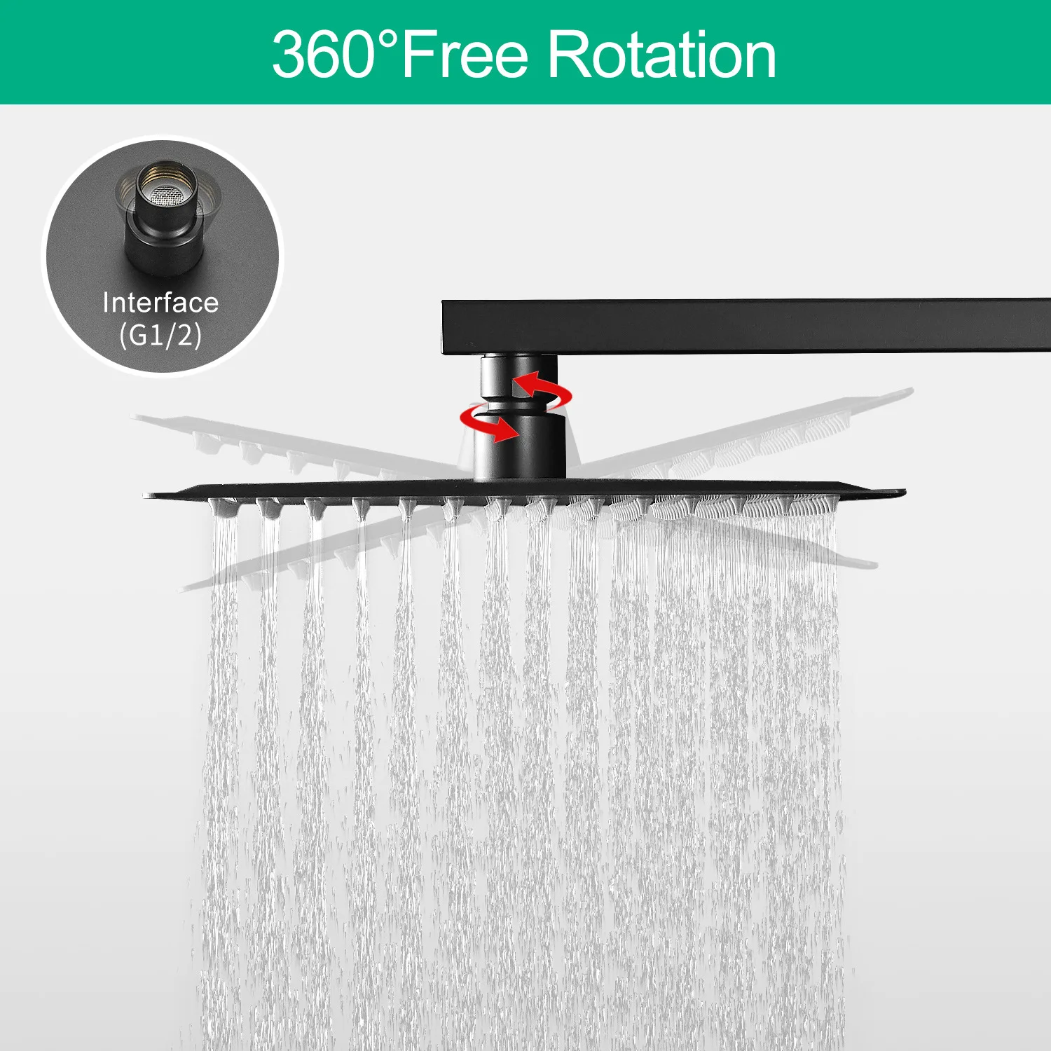 Description | 8 10 12 16 inch Shower Head Square Sprayer Matte Black Hand Showers Set Hidden Hose Body Spray Rain with Shower Arms |