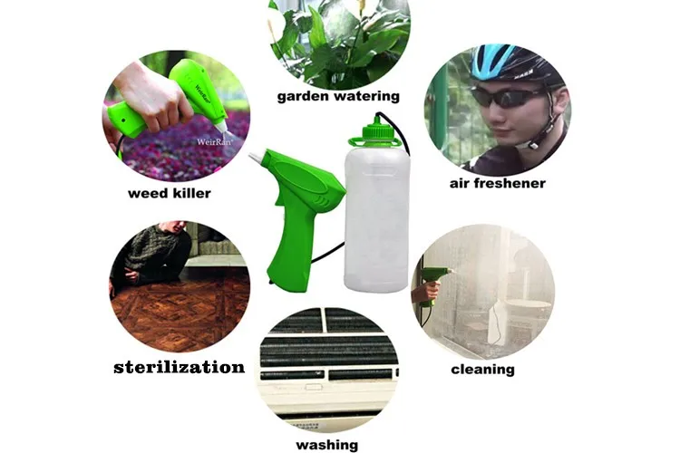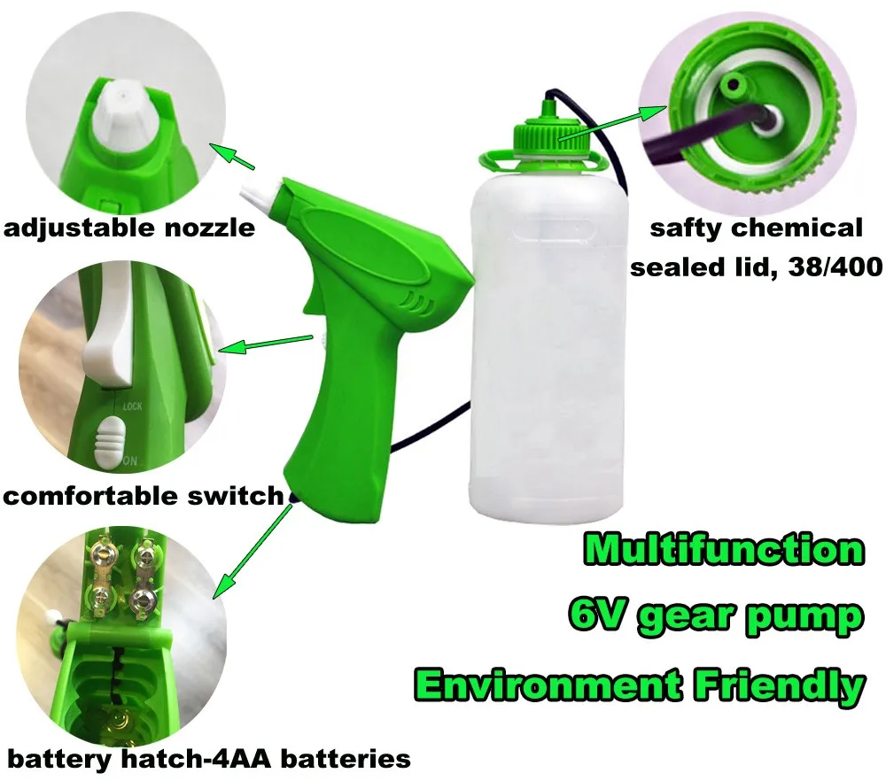 1-работает от батареи, пар или спрей. Блокировка распылителя и многоцелевой.