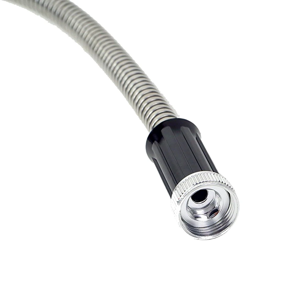 Solid outer metal coating, the metal hose is very sturdy even go around sharp corners or dog chew.