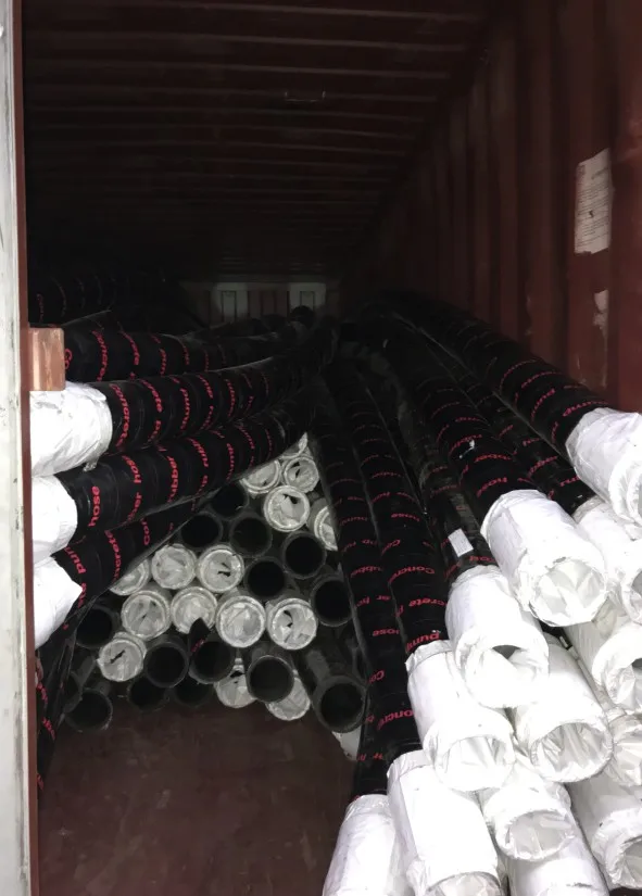 (1). Concrete pump rubber hose outside packing with Plastic bags and caps to protect surface and flange.