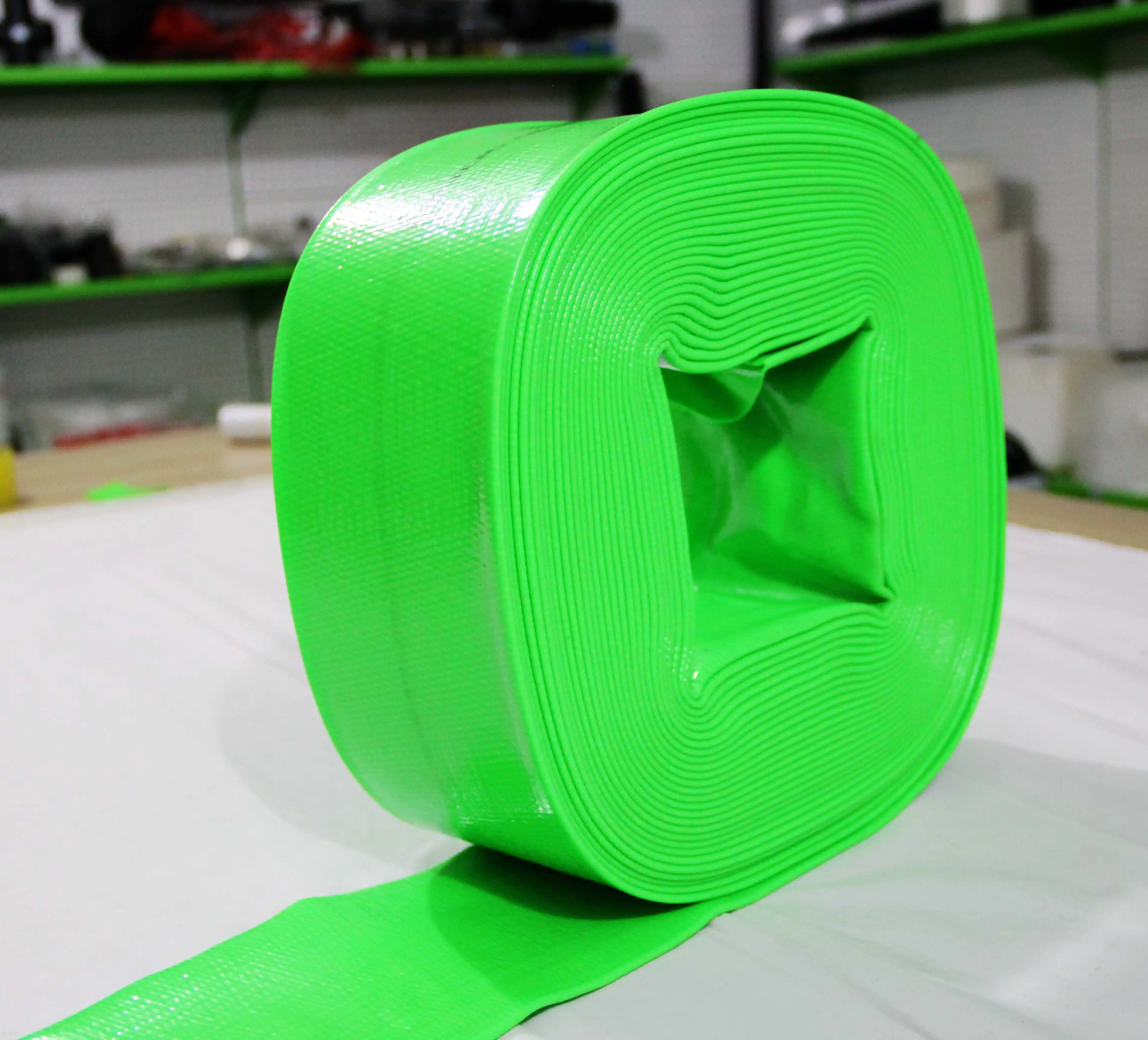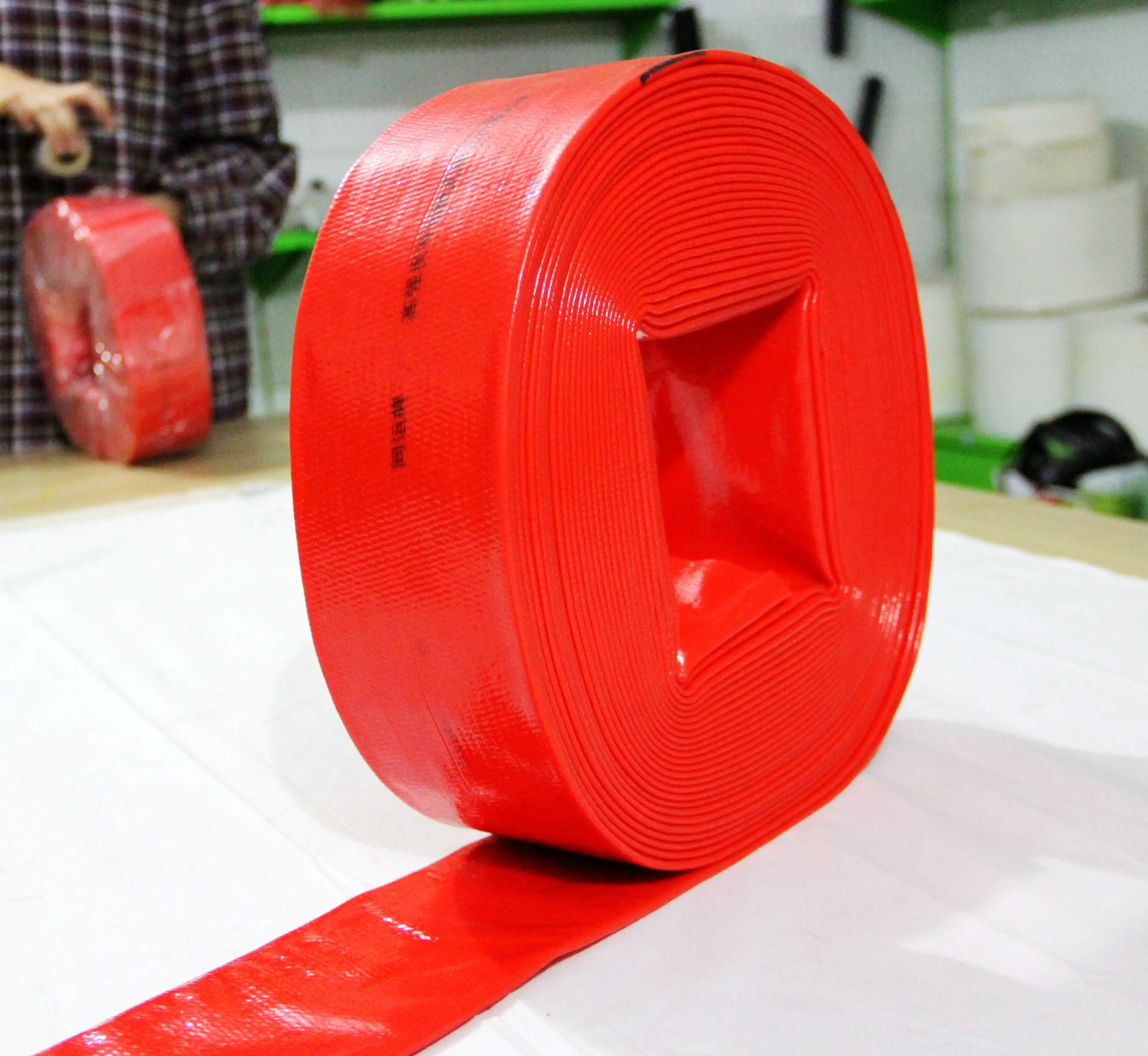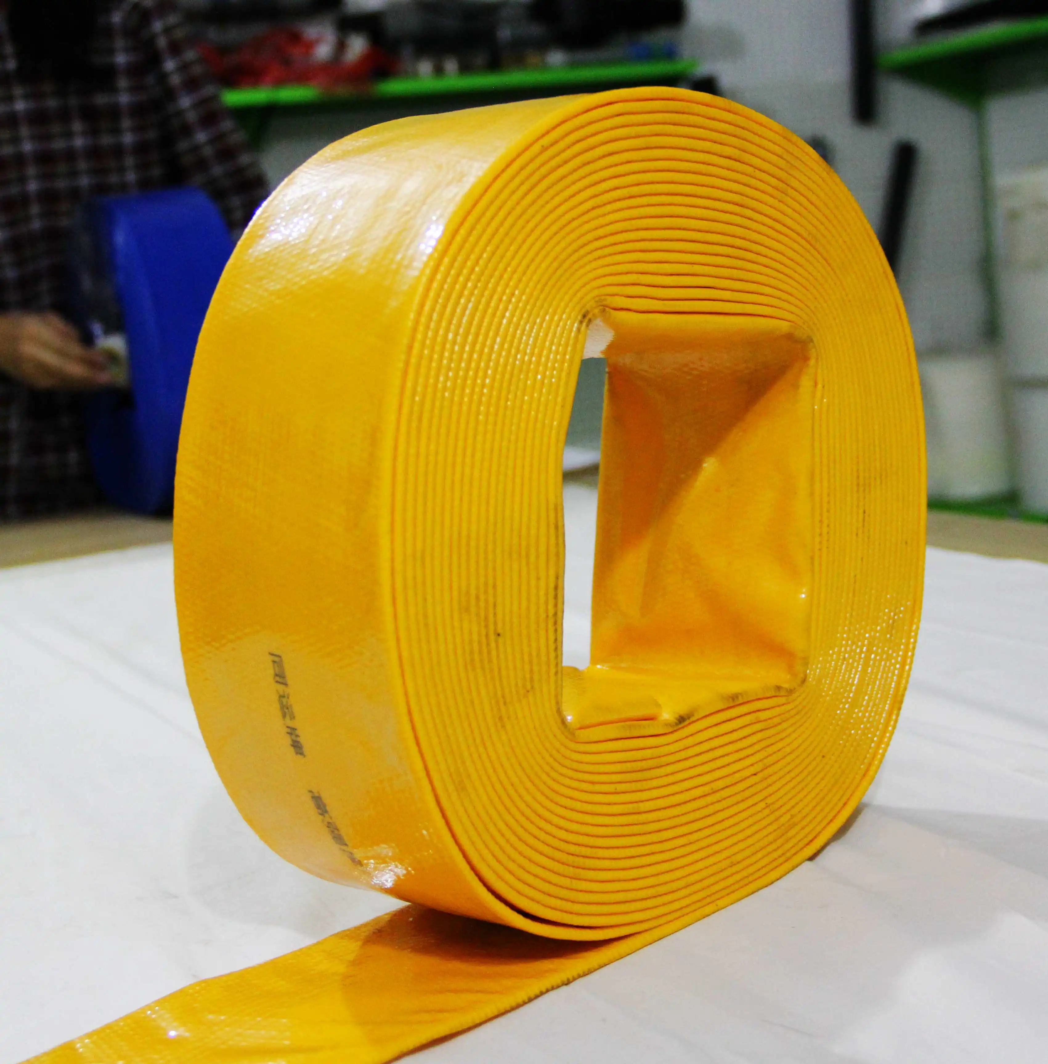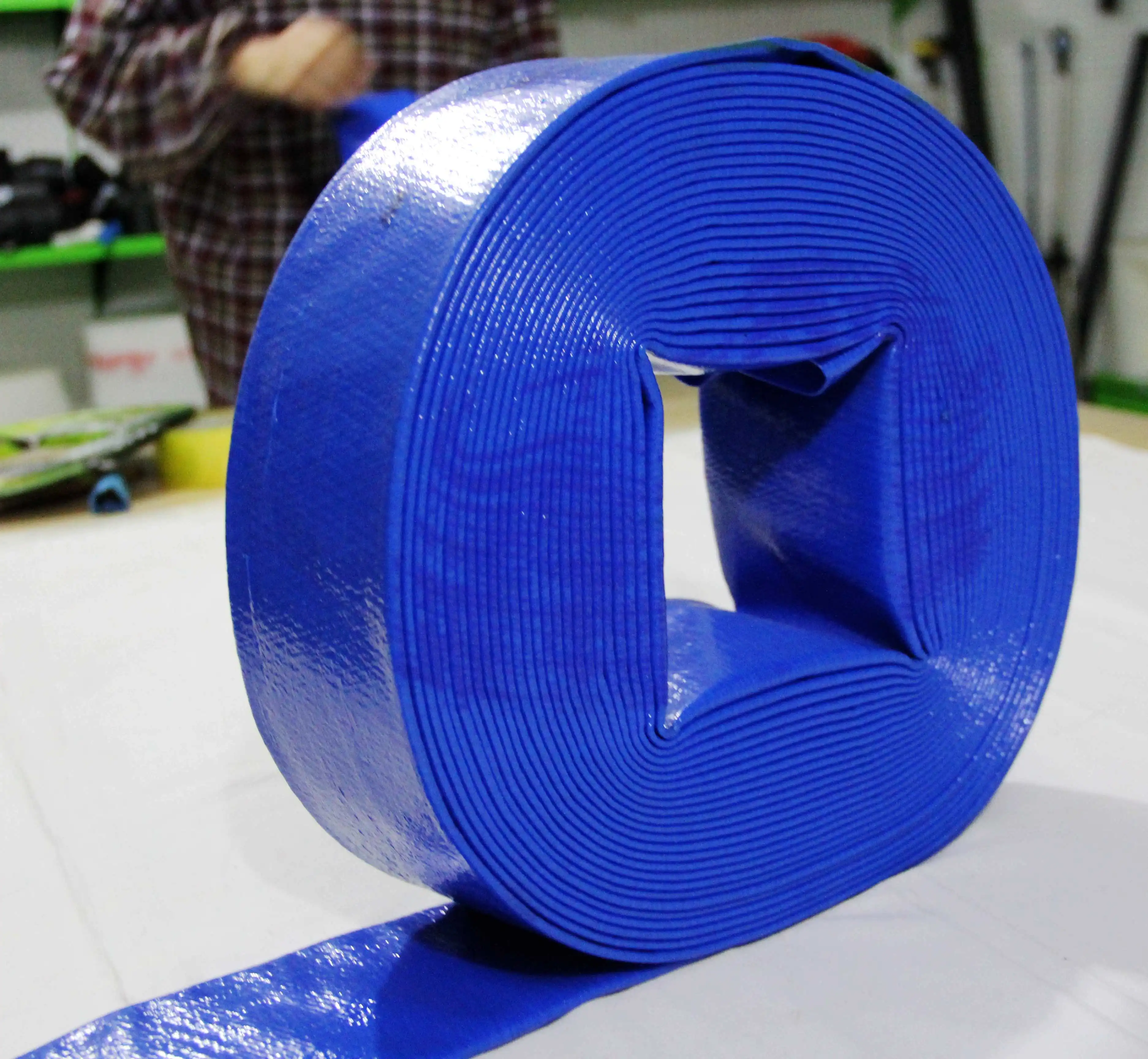 The PVC layflat hose is made from high strength polyester fiber and high quality pvc material,through continuous winding,uniform distribution and plastic extrusion molding.