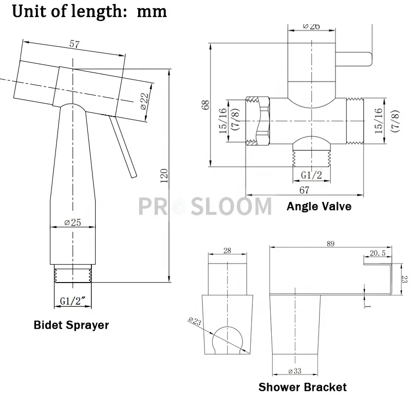 Material | Stainless Steel 304 Shattaf, hose and bracket; Brass angle valve (G3/8 or G1/2) |