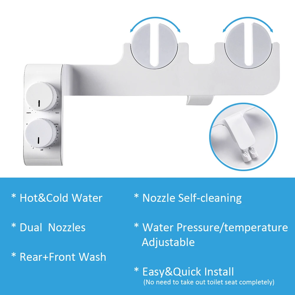 Non-electric Warm Water Self-cleaning Dual Nozzle Retractable Bidet Toilet