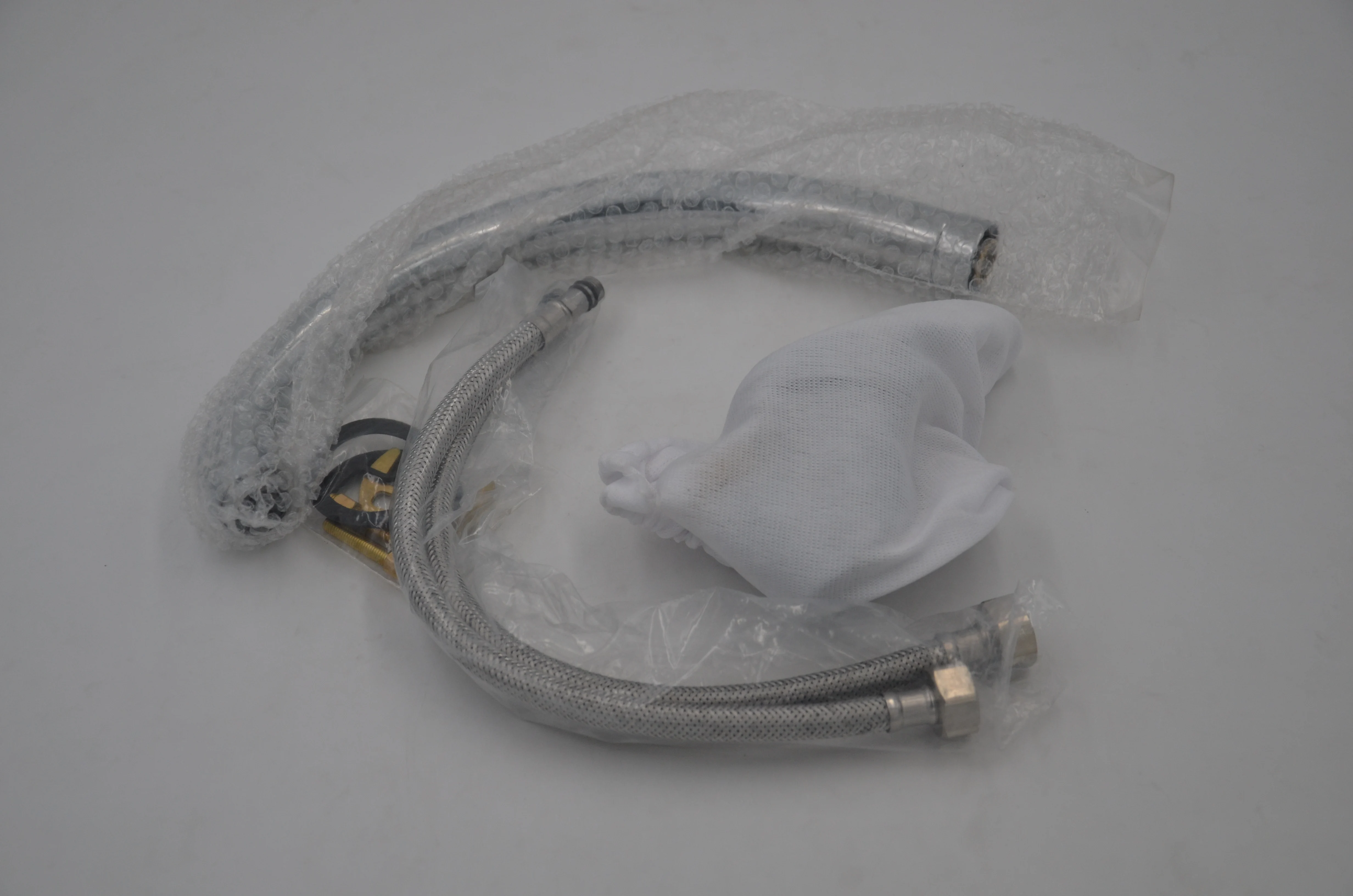 Штуцер | Два из гибкой аллюминиевой трубы для горячей и холодной воды, резиновая прокладка, фитинг из нержавеющей стали |