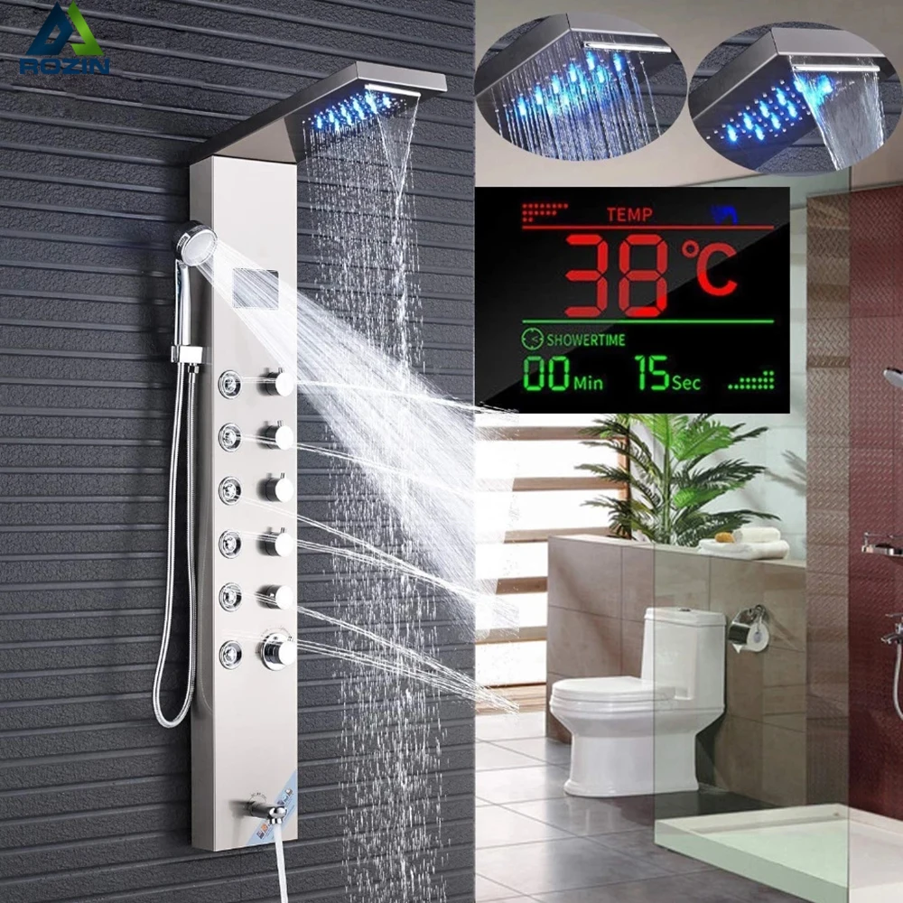 Черный водопад душевая Колонка панель кран с ванной носиком ручной спрей