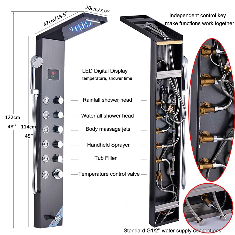 Размер душевой головки: 47*20 см (18,5 "* 7,9")