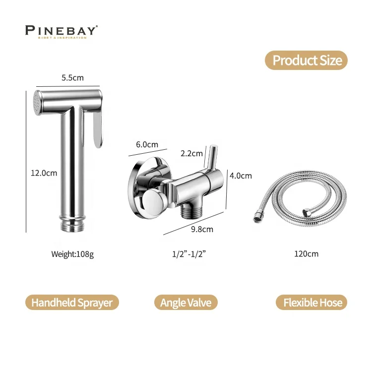 Item | PINEBAY Luxury Stainless Steel 304 Handheld Bidet Sprayer Set for Toilet | ||||||