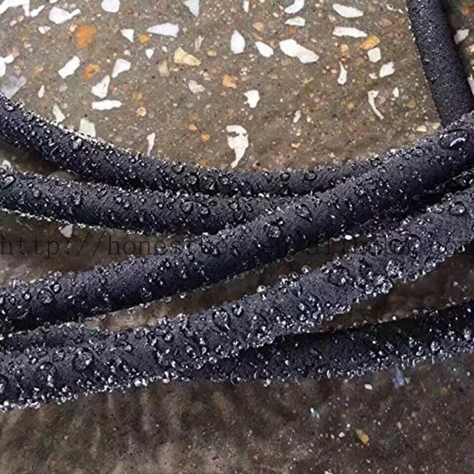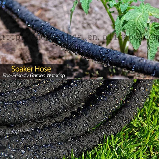 Feature | 1, This new designed soaker hose can help saving up to 70% of water compare to traditional open air sprinkler. Save you money and be friendly to our environment. 2, Water would be carry directly to roots which would protect unripe plants not to be knocked down. The hose stays concealed under soil or mulch, frees you from dragging a heavy hose to water plants every day. 3, When filled with water the hose weeps through its pores, soaking the ground and bringing moisture to the roots where it’s needed most. 4, The 100m roll length is perfect for a standard front or back yard. |