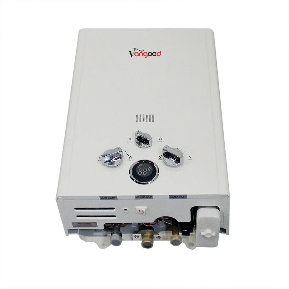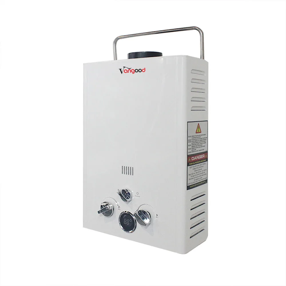 White | Gas Water Heater + Simple Shower Head & Hose |