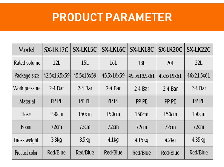 SX-LK12C | 12L | 425*165*590mm | 670pcs | 1400pcs | 1640pcs |