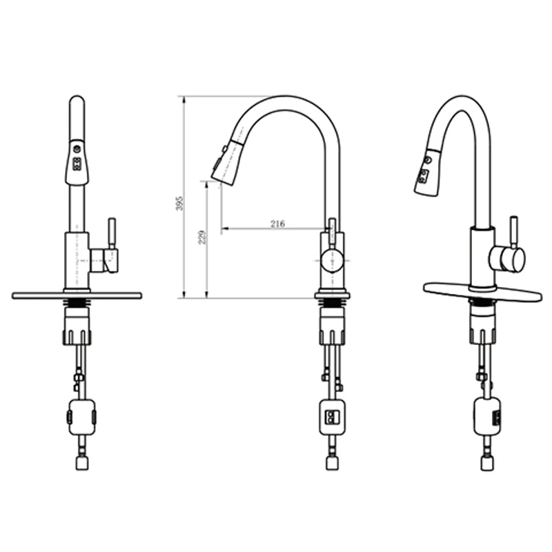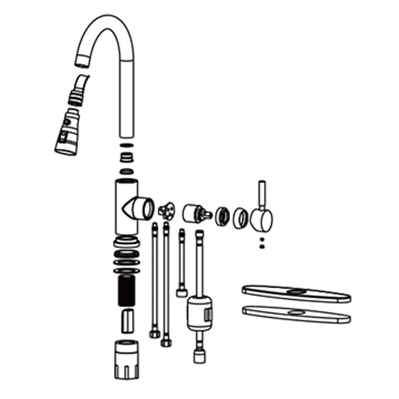 Specification | SUS304 body SUS304 handle ABS two-function rinsing sprayer 1.8M-PEX pull-out hose with quick connection with a 340G gravity ball ø35mm Mingdi Ceramic cartridge SUS304-80CM PEX water inlet flexible hose Optional: SUS304 stainless steel base plate |