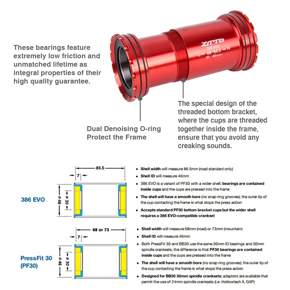 Центральная ось: внутренний диаметр 30 мм Вес: 103 г Совместим с: SRAM/FS/Rotor φ30/30 мм шатун шпинделя Для BB386EVO/PF30 68/73/86 мм φ46mm рама оболочка