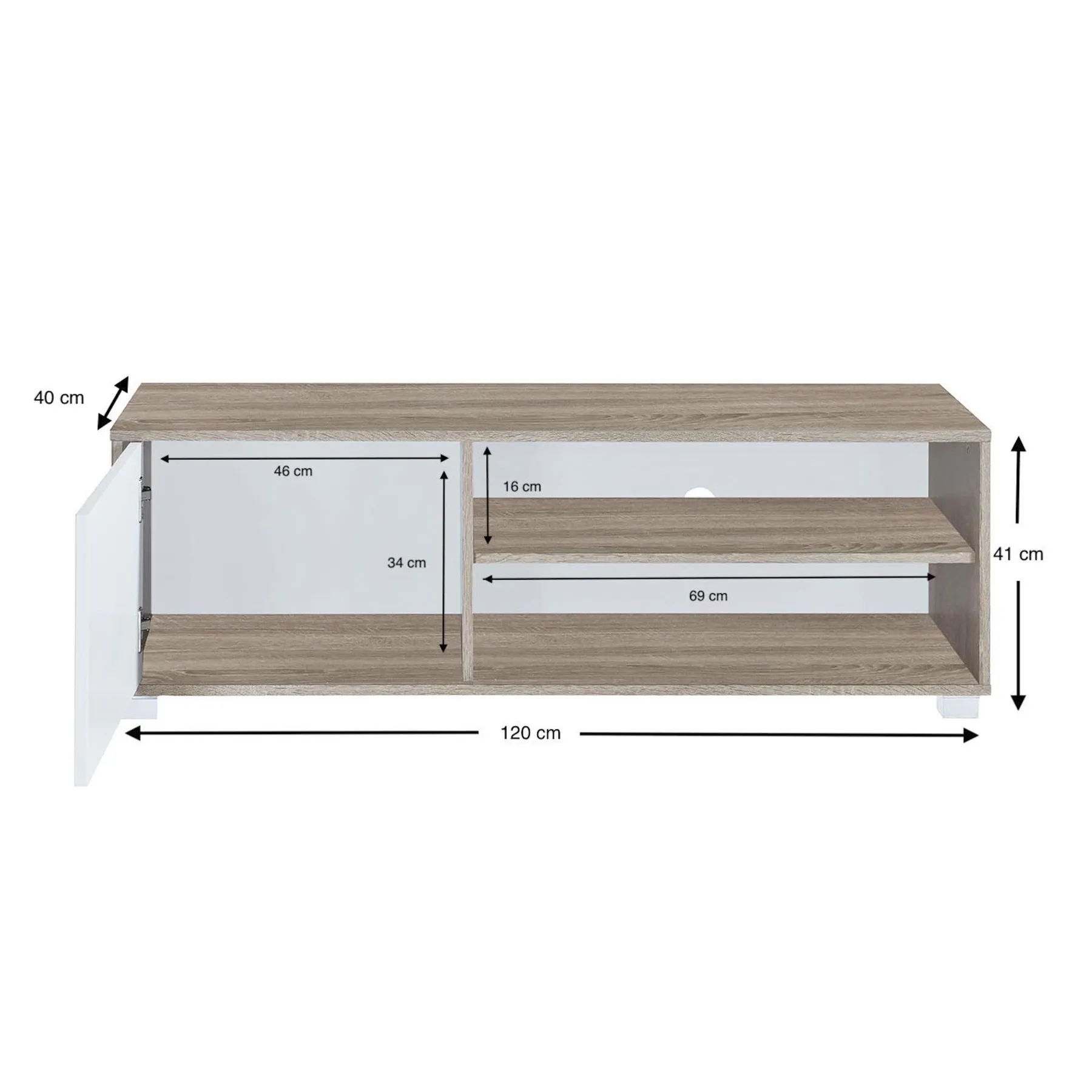 Гостиная ТВ-столРазмеры 120x40x41 см, натуральный дуб и пустая дверь. ЭтоНизкий шкаф для телевизораОн имеет два больших зазора, чтобы оставить любой тип электронного устройства, а также зазор сзади, чтобы пройти кабели. Он также имеет место для хранения, с боковой дверью. ЭтоТумба для ТВ в скандинавском стилеИмеет ПВХ ножки, чтобы избежать трения на полу.