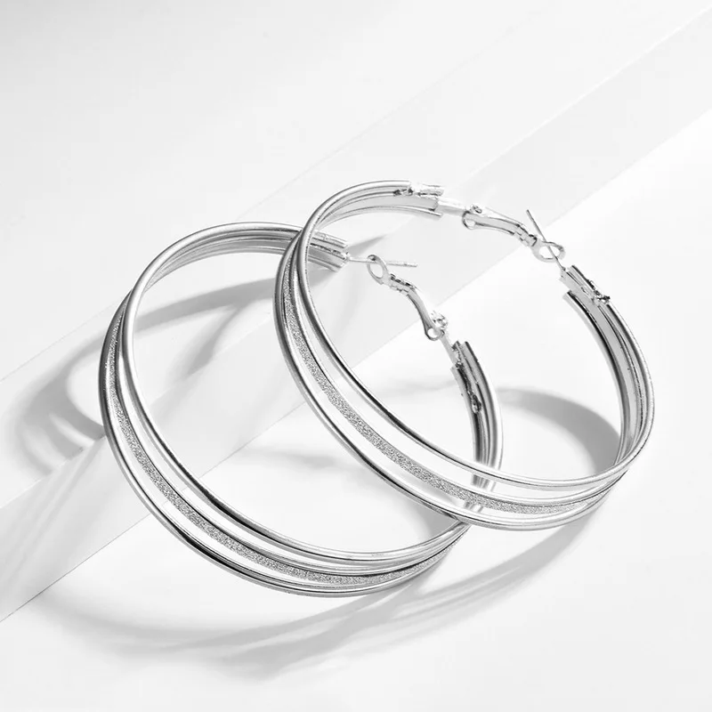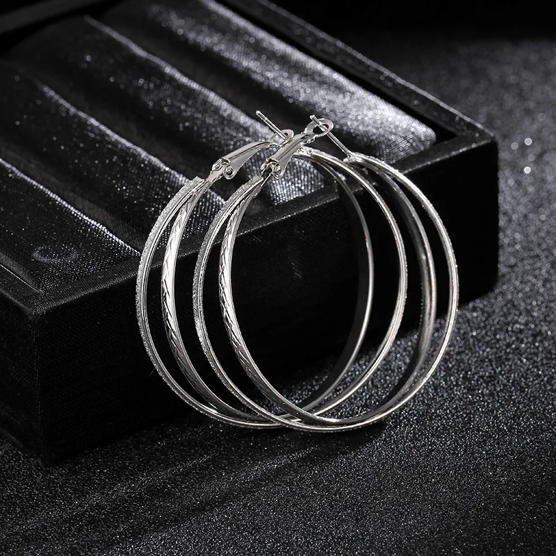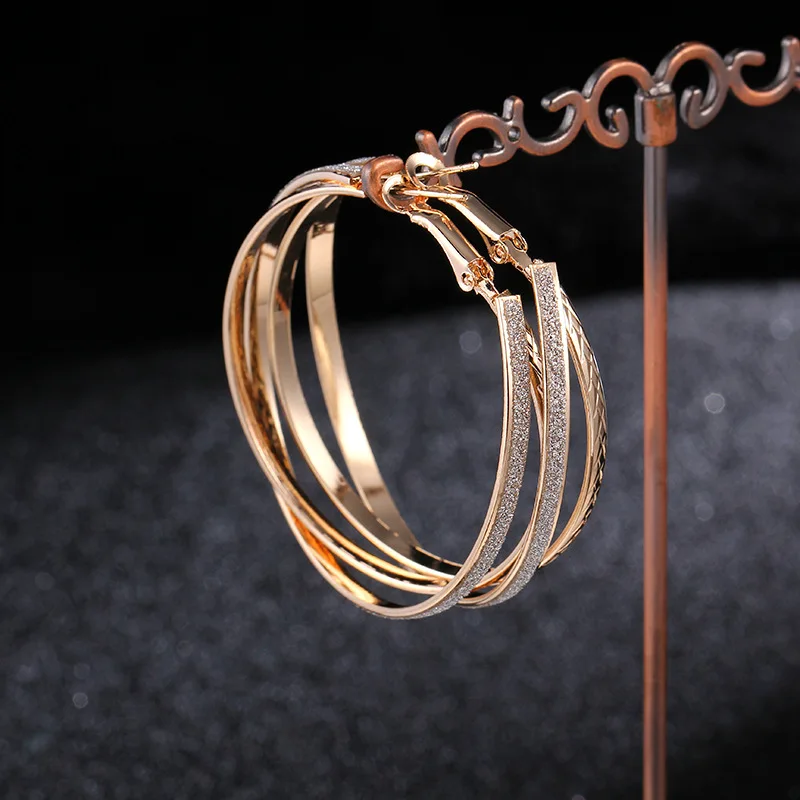 Хит продаж, модные простые трехслойные блестящие золотые большие круглые серьги-кольца