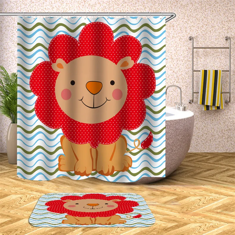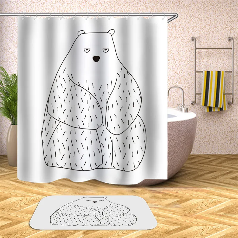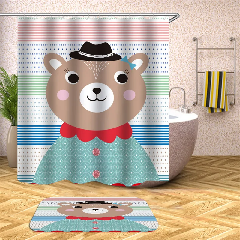 Медведь слон мультфильм полиэстер занавеска для душа ванная комната водонепроницаемый ремень крюк занавеска для душа для украшения дома