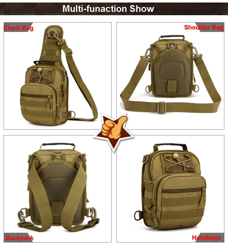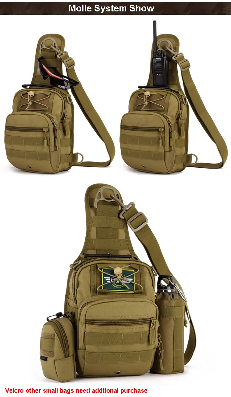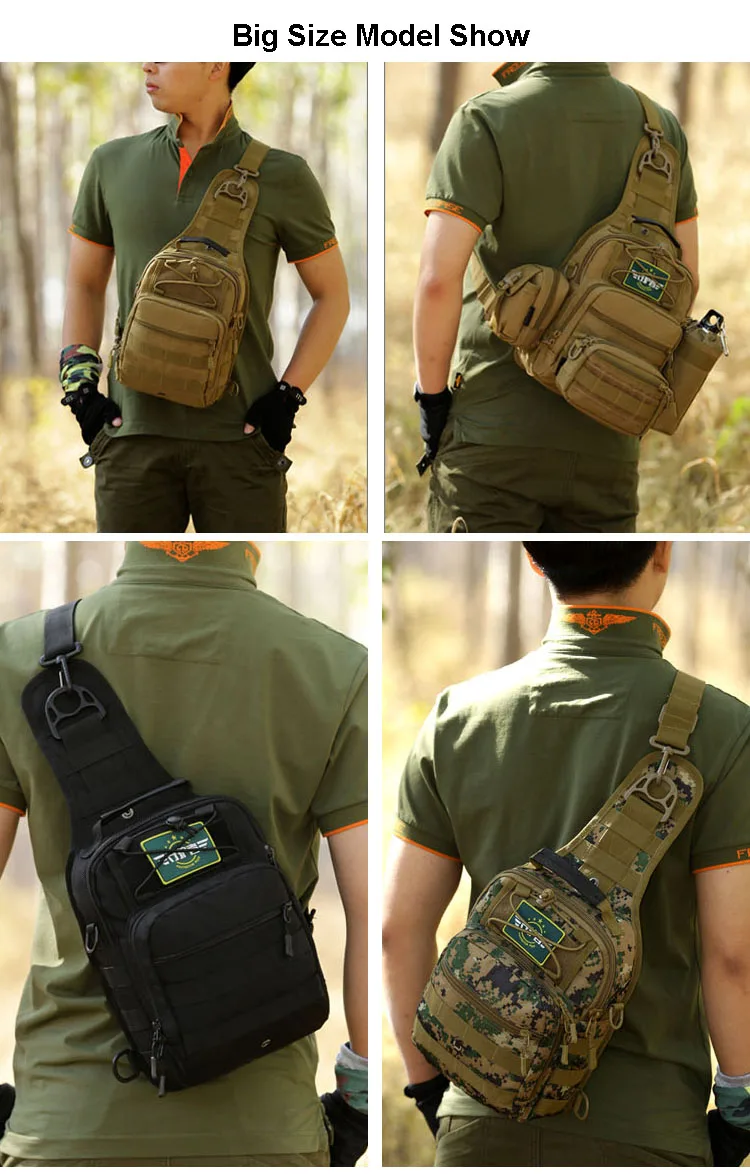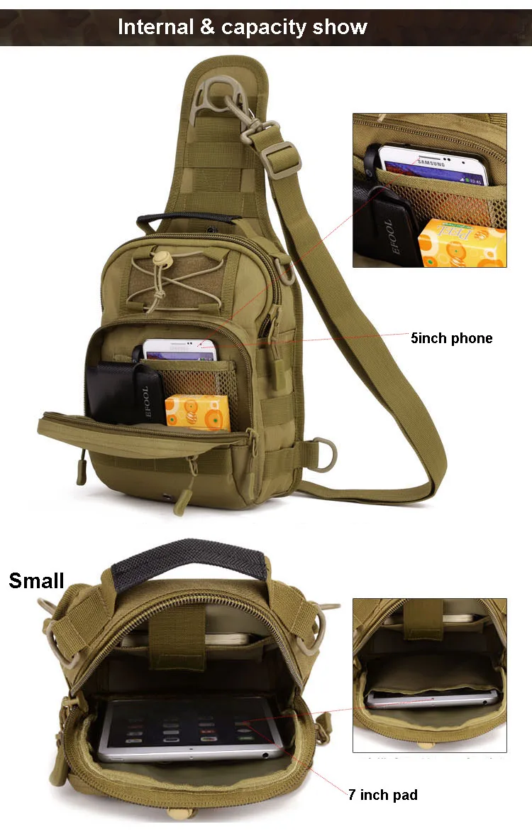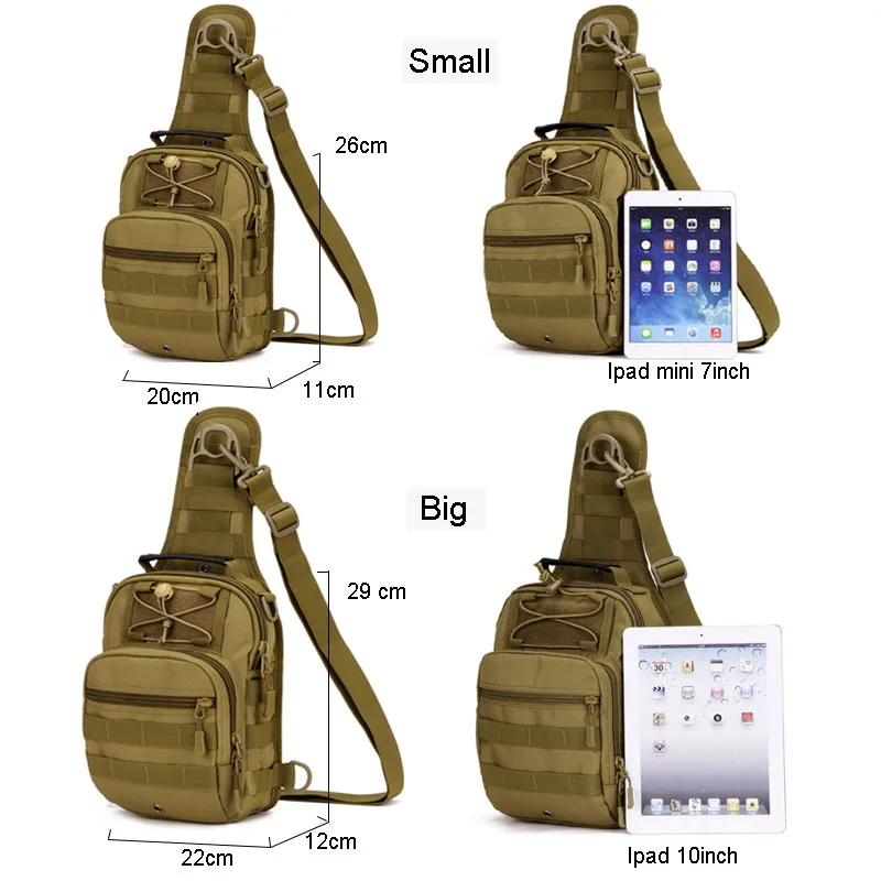 Materiaal: Waterdicht Nylon Voering: Polyester Kleur: Zwart, Kaki, ACU Digitale, Woestijn Digitale, Jungle Digitale, Grote Maat: 29 cm X 22 cm X 12 cm (HXLXW) Kleine: 26 cm X 20 cm X 11 cm (HXLXW)