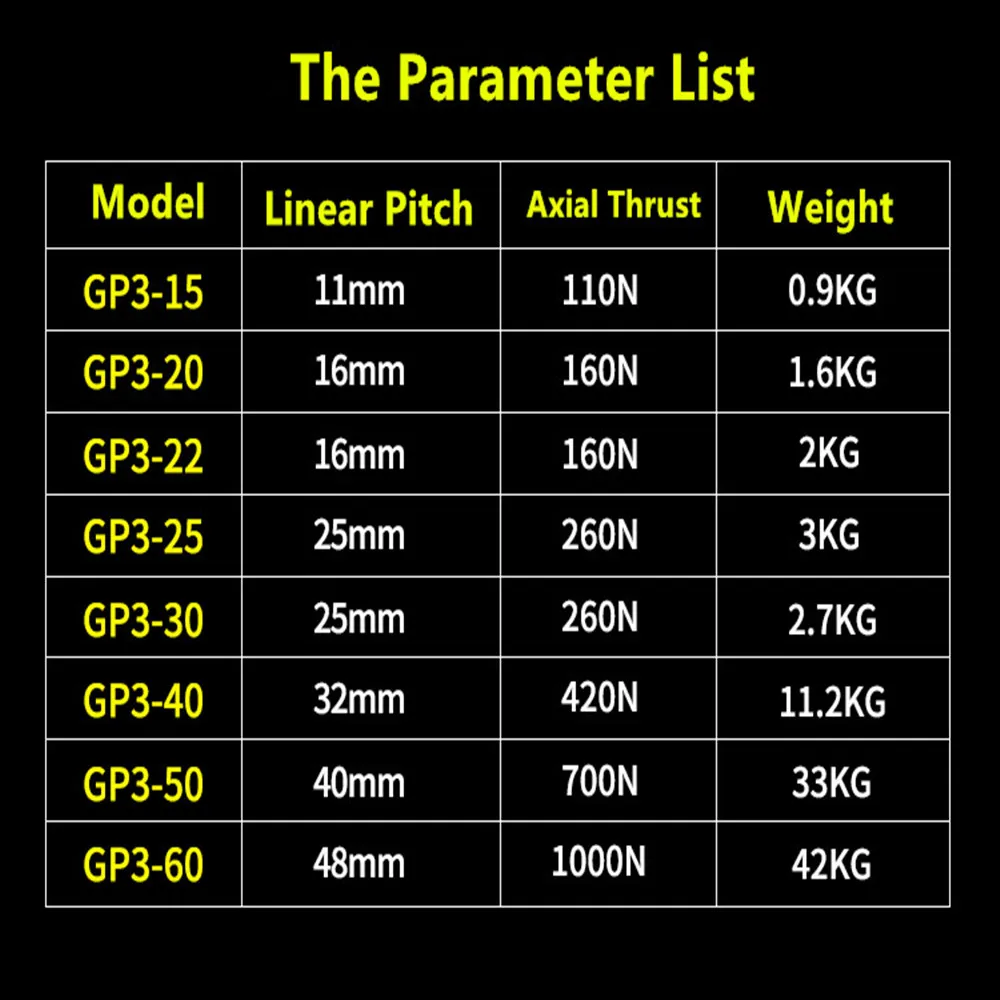 Технические параметры: линейный шаг и осевая тяга: