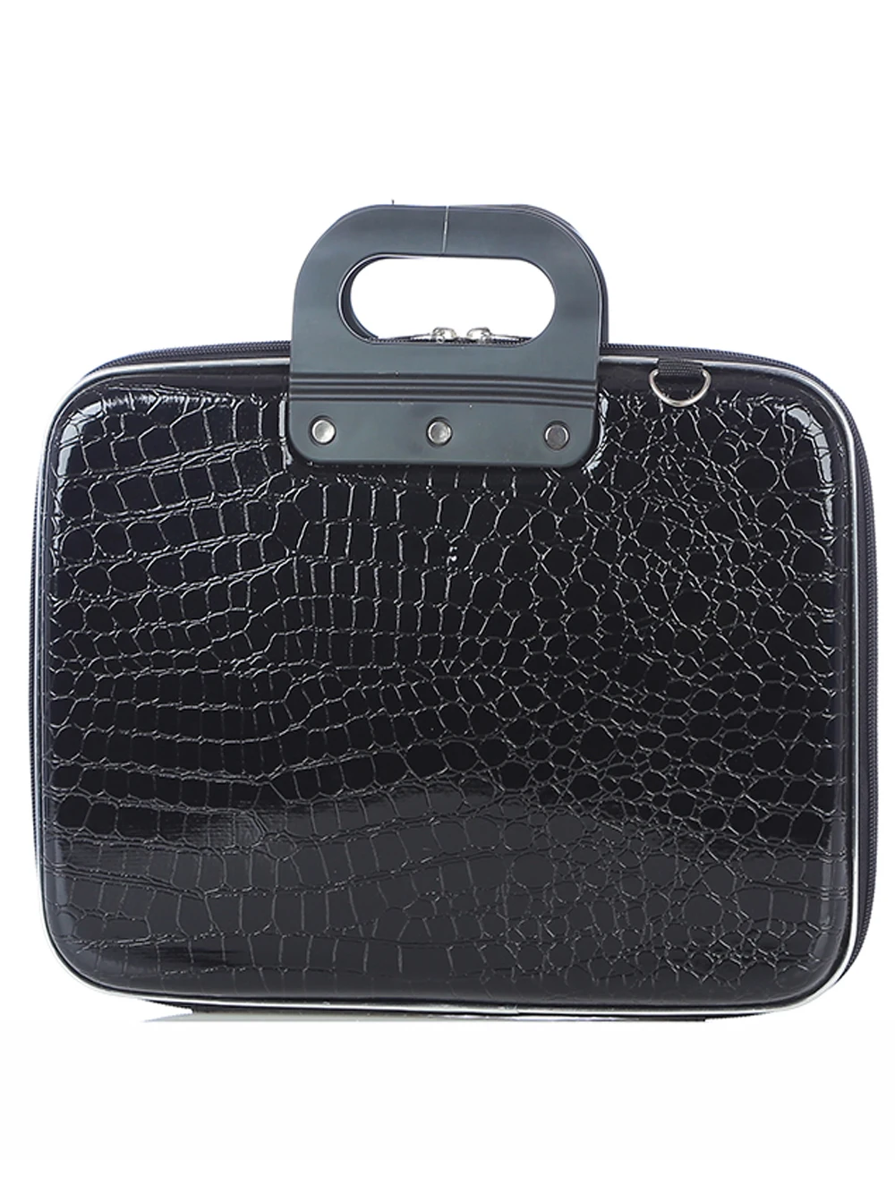 Универсальная сумка-чехол для планшета, ноутбука или бумаг 16 дюймов (синтетическая кожа крокодила, черный, молния). Стильная и надежная сумка для ноутбука или планшета до 32х25см. с жестким корпусом, предохранит ноутбук или планшет от повреждений благодаря прочному жесткому каркасу. Закрывается с трех сторон на молнию. Внутри с одной стороны два ремешка на липучках, с помощью которых крепится ноутбук. С другой стороны есть три открытых кармана, куда можно положить документы, блок питания, мышку и другие нужные вещи. Также еще есть карман на молнии, два плоских кармана для записок, карточек и тому подобного, и три слота для ручек, карандашей или маркеров. Подкладка на текстильной основе. Есть две твердые ручки.