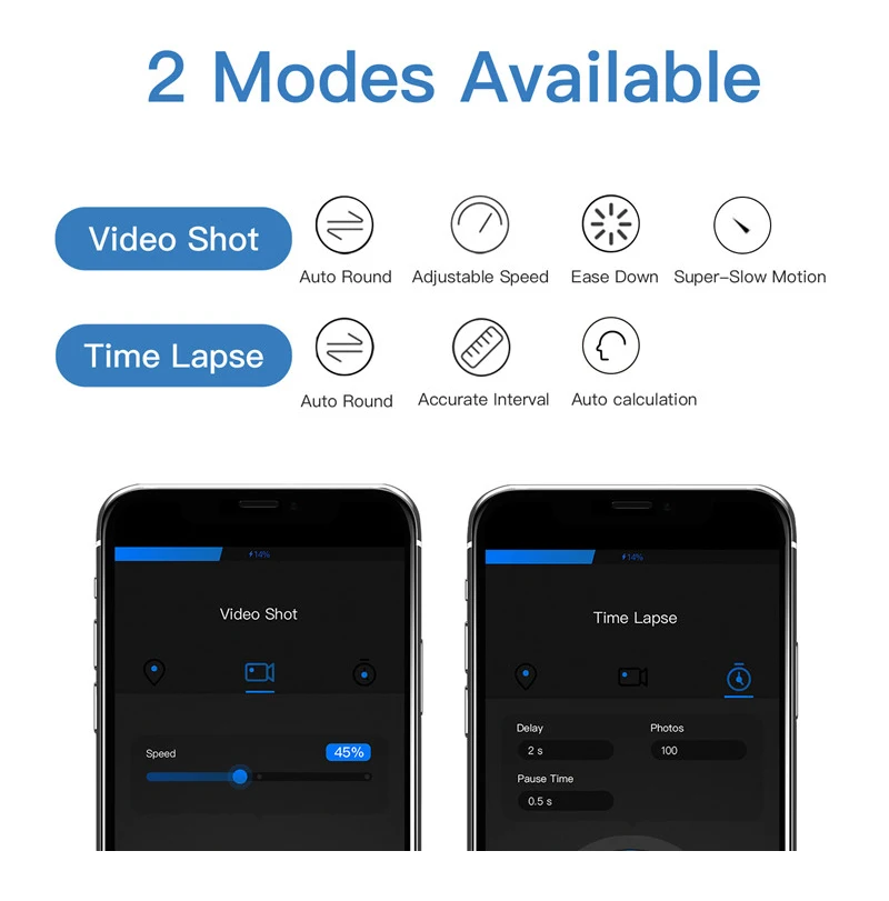 6. Управляется со смартфона через Bluetooth. Используя слайдер шоколада механизированная камера с приложением шоколада слайдер, он может эффективно избежать ошибок, вызванных неправильной операцией. Больше удовольствия, меньше НГ. Это значительно повышает эффективность съемки для видеосъемки и задержки во времени, что делает съемку проще.