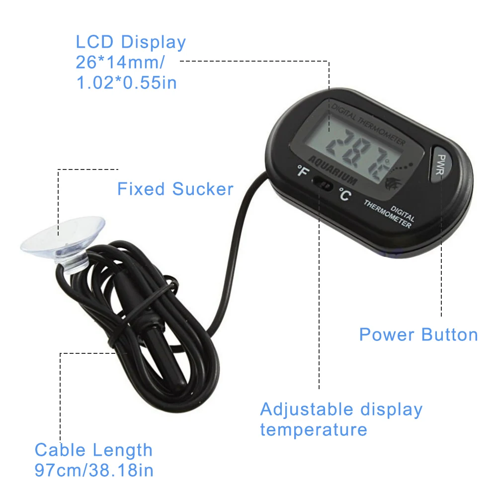 - °F / ° Conversion: It records a wide range of temperature, will show the temperature in Celsius or Fahrenheit, which makes it practical for use, you can use it in any kind of fish tank.