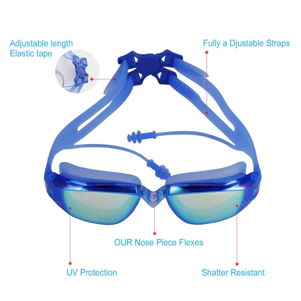 Очки для плавания HD с носовым зажимом, не протекают