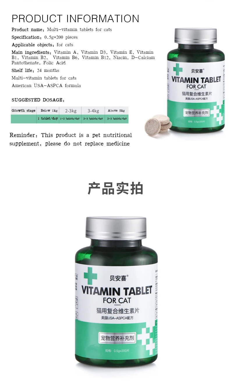 Многовитаминные таблетки для домашних животных для кошек витамин B группа для кошек, питательные волосы и дополняя питание для кошек, 200 таблеток
