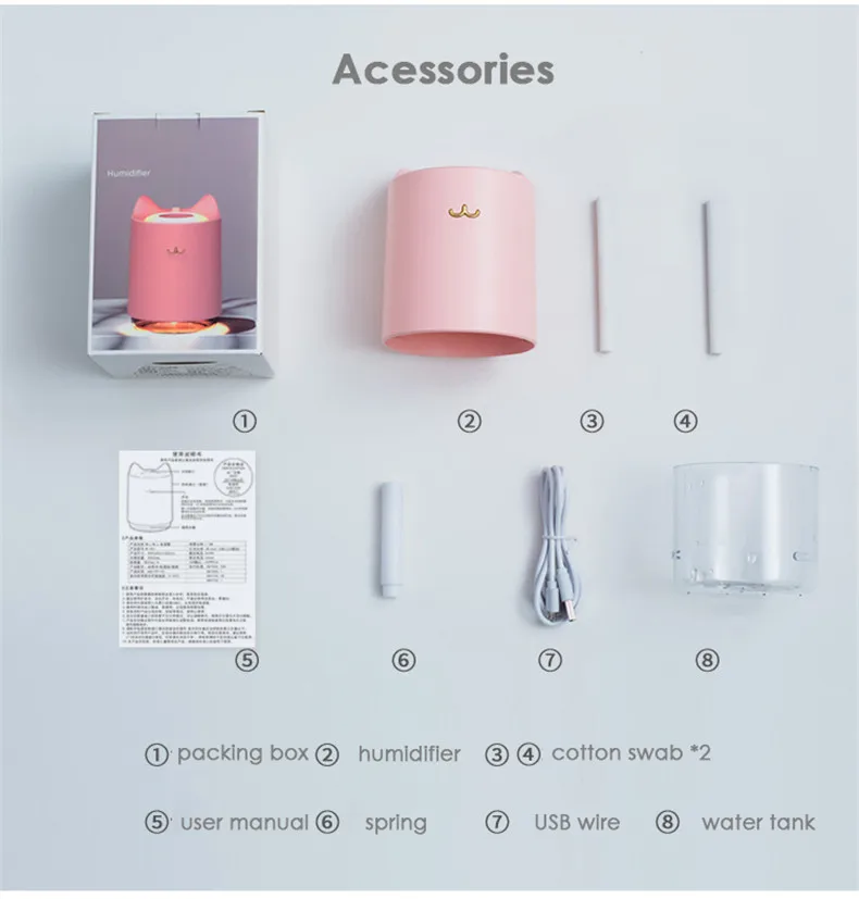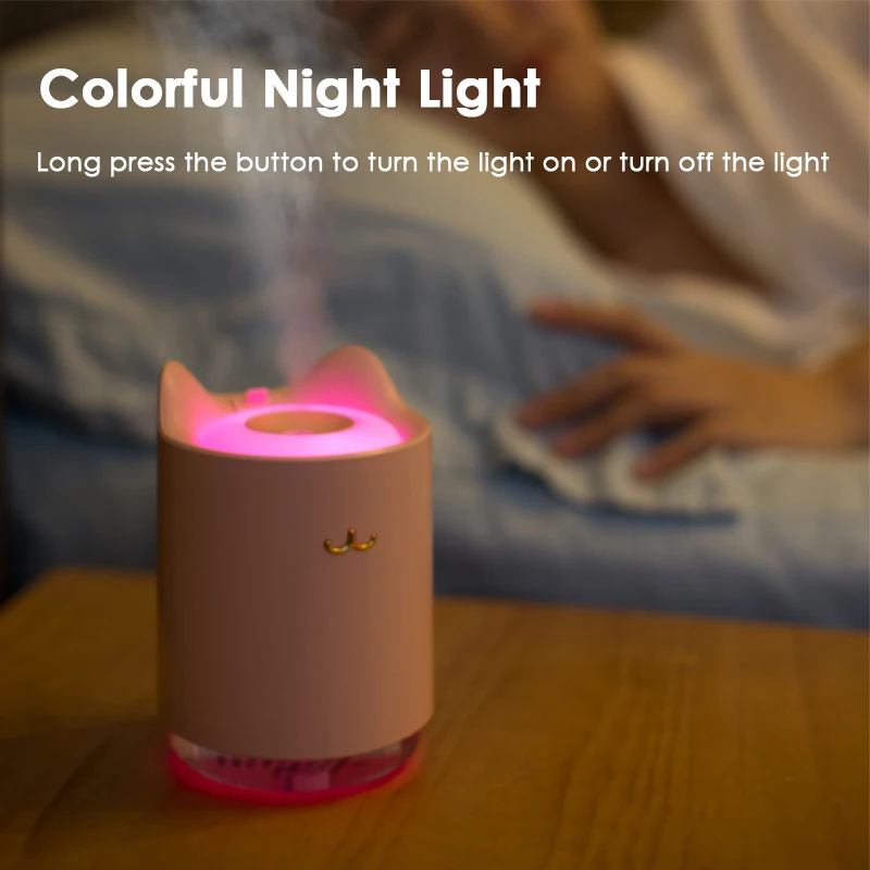 Увлажнитель воздуха USB Ультразвуковой Настольный 320 мл милый кошачий Водный туман диффузор ночной Светильник влагодержатель для спальни увлажнитель для малышей