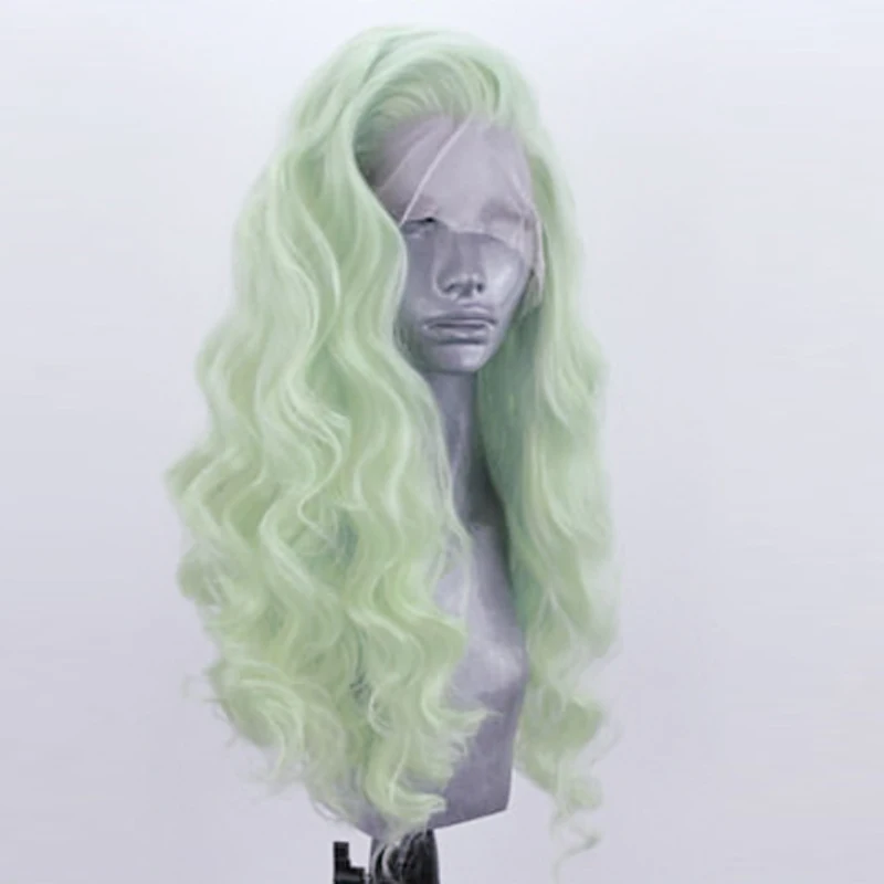 Парик харизмы светильник-зеленый из натуральных волос, синтетический парик на шнурке спереди, бесклеевые термостойкие парики для женщин, парики для косплея