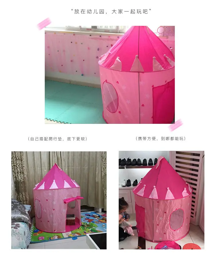 Описание: Не только палатка для ваших малышей, но и специальная сумка для хранения игрушек. Кубка достаточно большая, чтобы разместить 3-4 малыша. Родители тоже могут играть с вашим ребенком. Можно разместить как в помещении, так и на улице. Спецификация: Материал: полиэстер Цвет: синий и розовый Размер: 135*105 см/53,1 * 41.3in Посылка 1 * Детская портативная игрушечная палатка