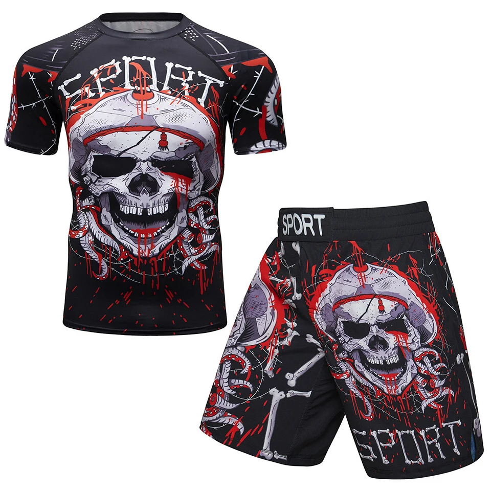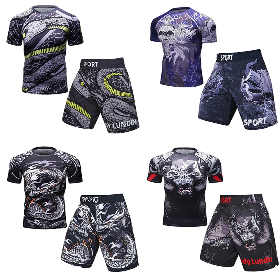 Рашгард Мужская mma футболка для занятий боксом mma Компрессионные Шорты Муай Тай наборы футболок спортивные короткие боксы enfant bjj gi ju jitsu футболка