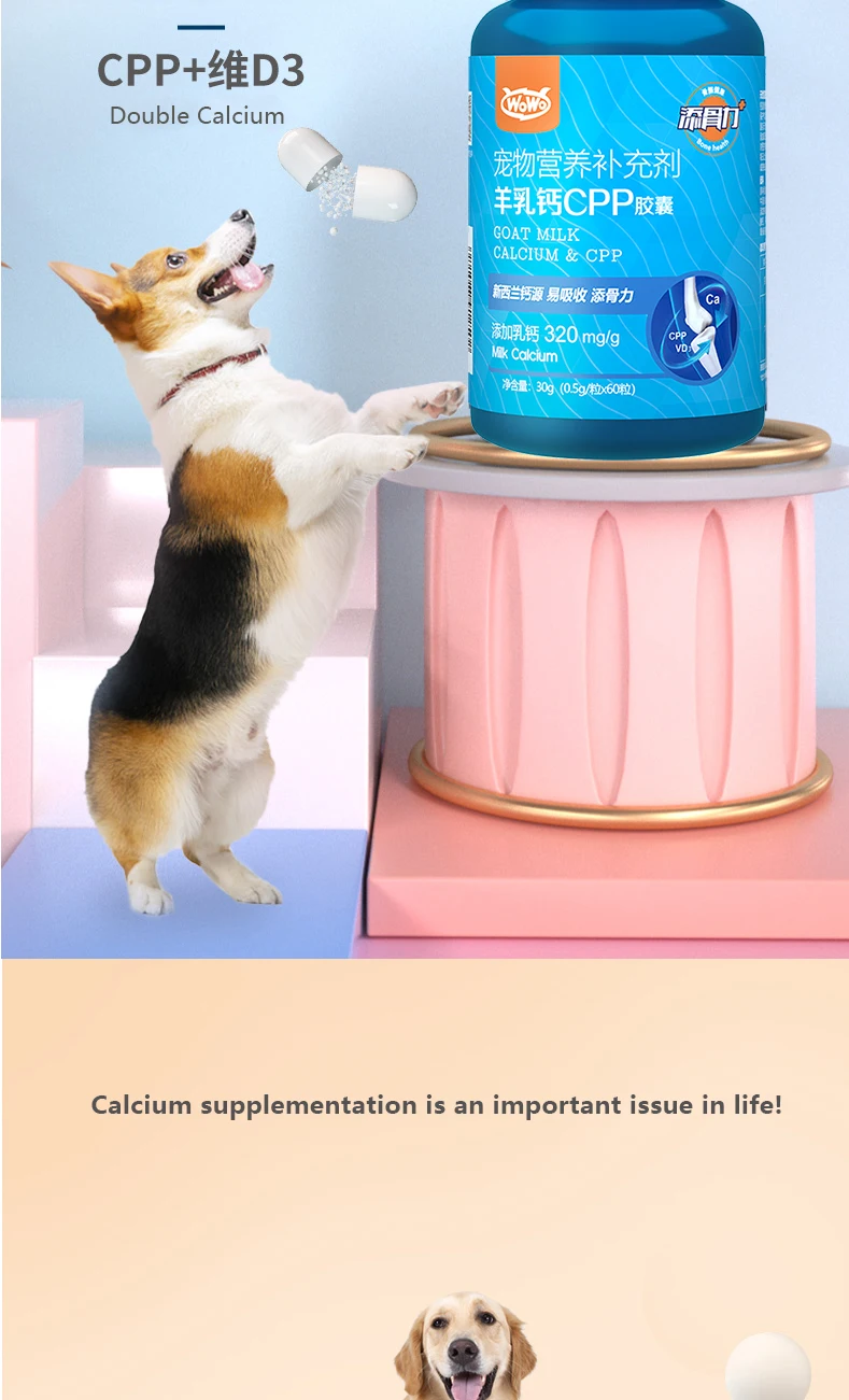 Коты и собаки, добавка кальция, козье молоко, кальций, CPP капсулы, 60 капсул, пищевая добавка, добавка для костей и кальция