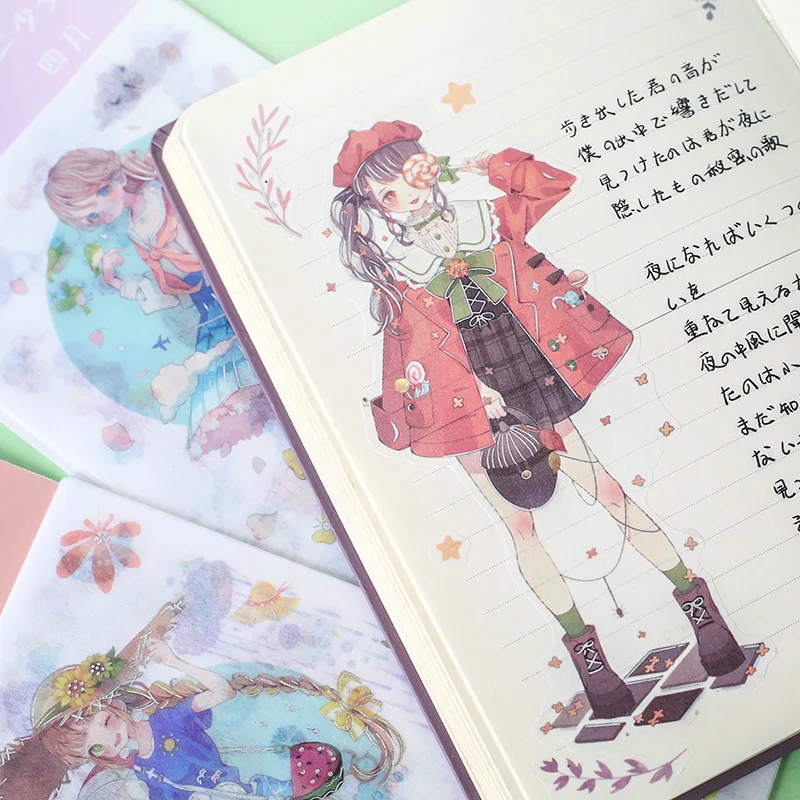 Милые японские свежие нарисованные наклейки ручной работы девушка и ветер мобильный телефон дневник Сделай Сам наклейки для ноутбуков декабрьская серия канцелярских принадлежностей для девочек