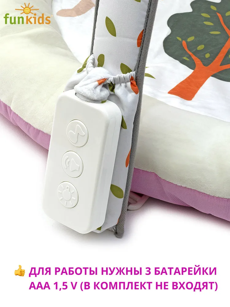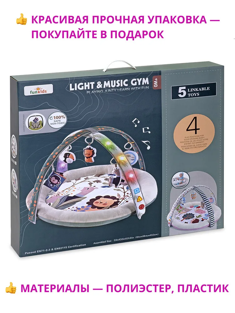 На коврике ваш малыш откроет для себя мир, полный новых тактильных ощущений, сочных красок, ярких образов и звуков! Можно лежать на спине, ползать на животе, толкаться ногами, сидеть и развиваться в компании веселых друзей. Расцветки CC8738 и CC8739 имеют игровые дуги с подсветкой и музыкой. Для работы необходимы 3 батарейки AAA (1,5 V). Батарейки в комплект НЕ входят.