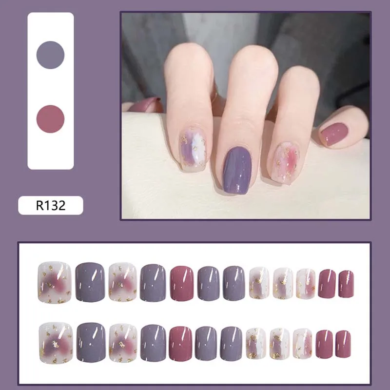24 шт градиентные поддельные ногти гроб ногти советы нажмите на ногти с клеем