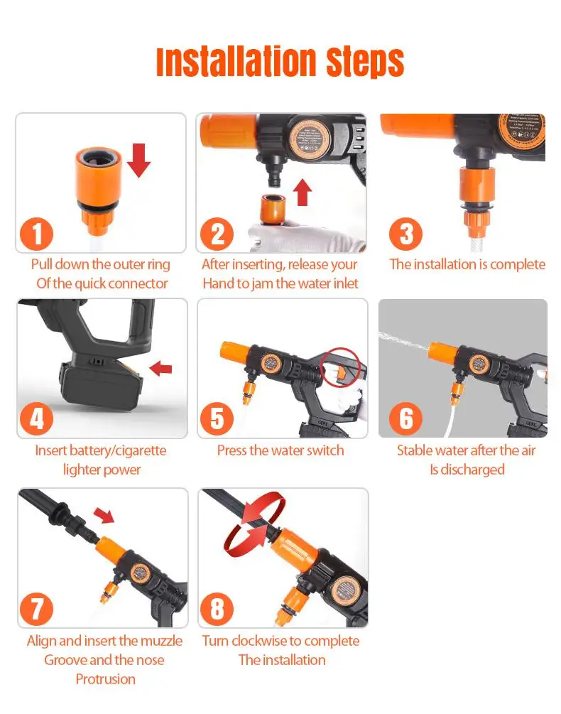 8. Его можно использовать как водяной пистолет для мытья, инструменты для полива сада, идеально подходит для полива сада, сельскохозяйственного орошения, мойки автомобилей, уборки дома и так далее.