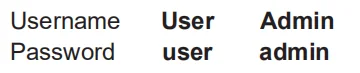 Выберите имя пользователя из списка и введите пароль. Пароли по умолчанию: