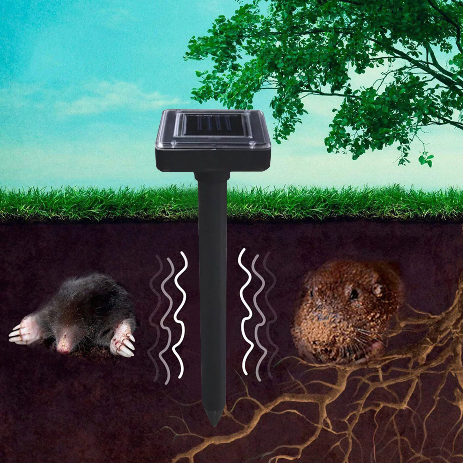 Для оптимальной производительности мы рекомендуем, чтобы во время установки двора моль репелленты были помещены на каждые 96 футов на вашем газоне. Звуковые импульсы излучают звуковые импульсы 3-4s каждые 30 секунд, он проникает в почву, а также заставляет вредителей эвакуировать область, через которую движется звук.