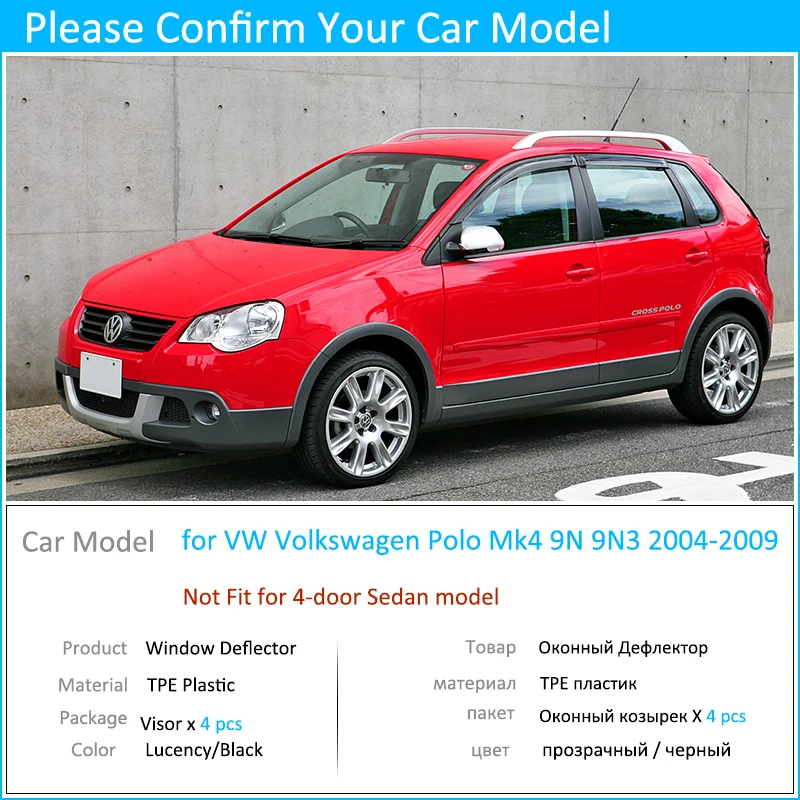4x оконные дефлекторы козырек вентиляционные навесы защита дефлектор укрытия Щит Аксессуары для Фольксваген Поло MK4 9N 9N3 2004 ~ 2009