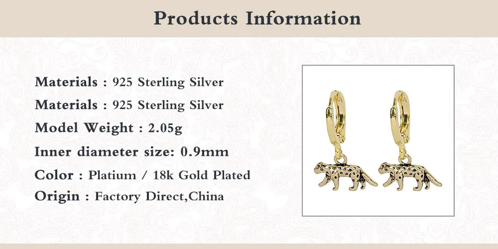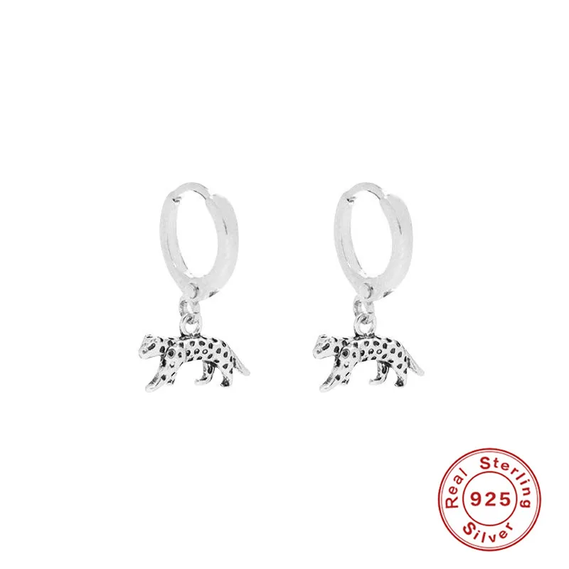 Стерлинговое Серебро 925 пробы, европейская модная крутая подвеска с леопардом, серьги-кольца для женщин, подарок, серьги в стиле панк-рок с животными