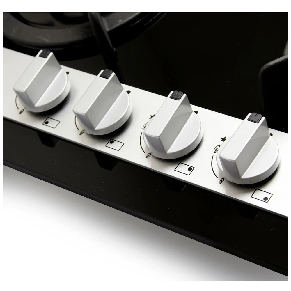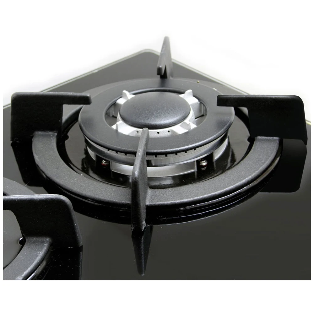 Одна из конфорок системы GINZZU HCG-467 обладает удобной конструкцией тройной короны. Для управления используются простые поворотные механизмы со встроенным электроподжигом. Для обеспечения защиты от детей рабочая поверхность дополнена надежной блокировкой. Прибор обладает размерами 60x11.5x52 см, а при монтаже требует соблюдения габаритов встраивания: ширины 48 см и глубины 56 см.