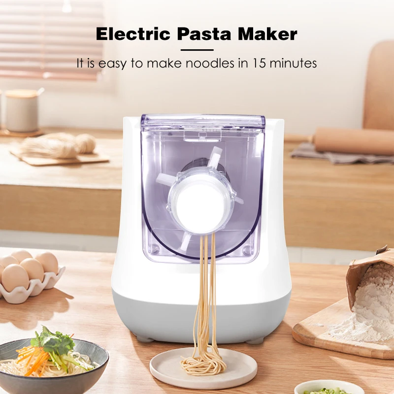 【Изготовление свежей лапши в 15 Minutes】: Интеллектуальная машина для лапши может сделать лапшу путем автоматического смешивания, замеса и экструзии, добавляя соответствующую пропорцию муки и воды, смешивая лапшу за 10 минут и выходя за 5 минут. Он не требует опыта и умений и может управляться пожилыми людьми и детьми.