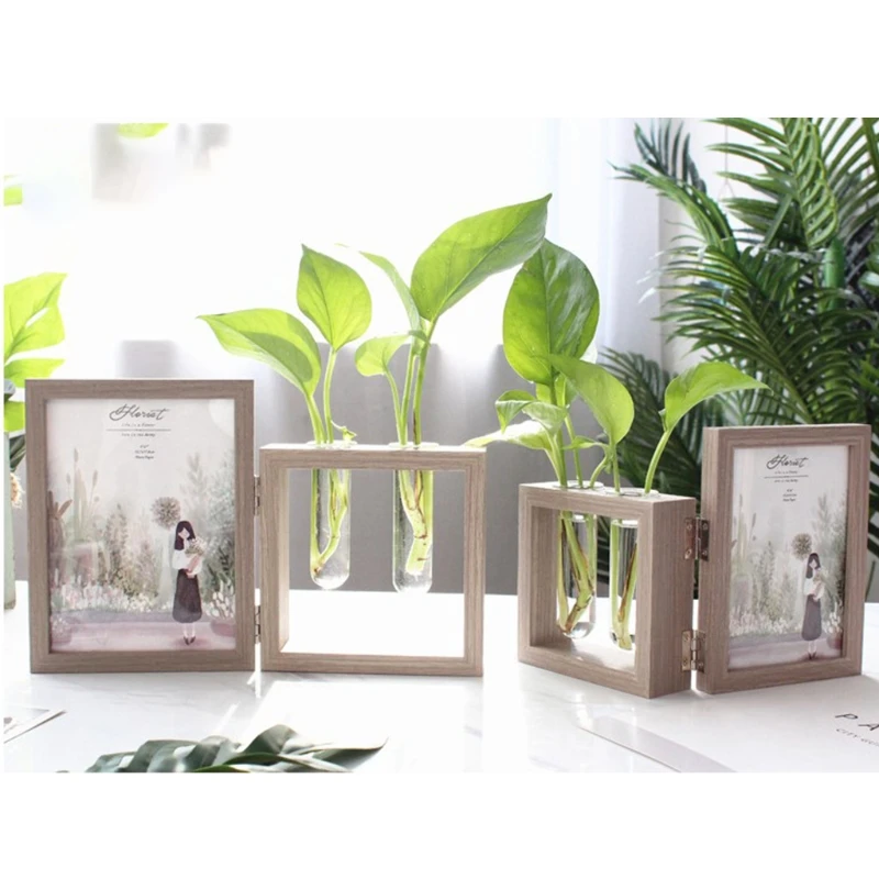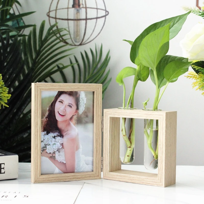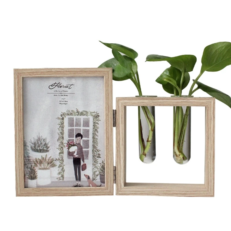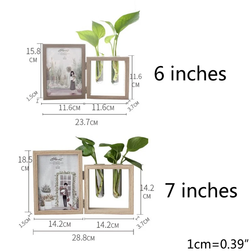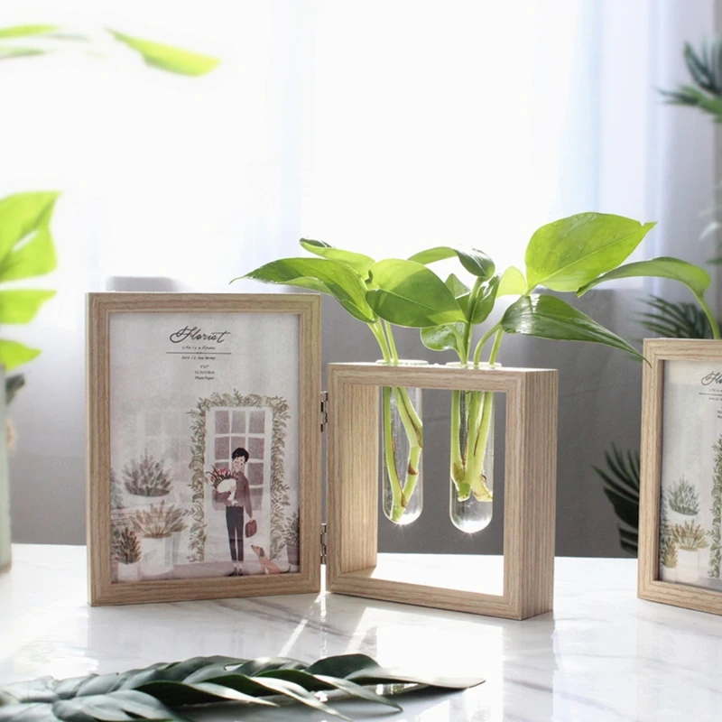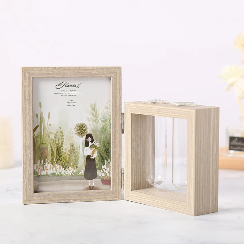 Настольная рамка деревянная фоторамка фотоальбомы и растения 2 ваза комбо, двусторонний дисплей навесной Настольный деревянный стенд, стеклянный террариум для растений/сухоцветов (дерево 7 дюймов)