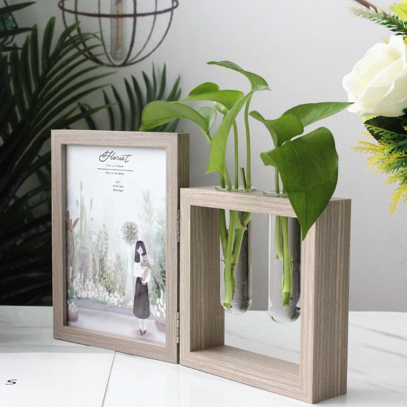 Креативная деревянная рама: две пробирки для демонстрации свежих цветов, сухоцветов или небольших растений для домашнего декора в гостиной, спальне, туалете, столовой, кухне или офисе