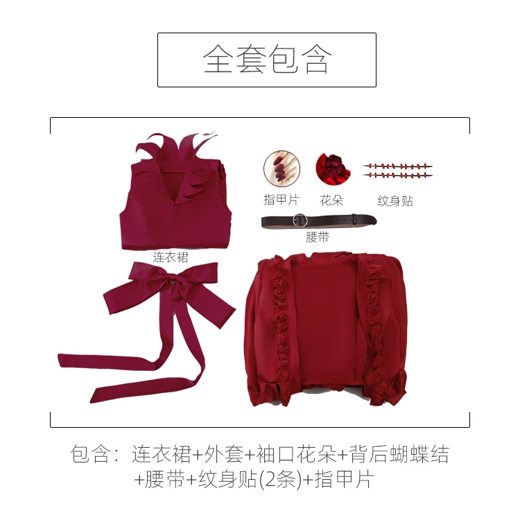 В комплекте:Платье + пальто + цветы на манжетах + бант на спине + пояс + наклейка на татуировку * 2 + украшения для ногтей+ Ожерелье