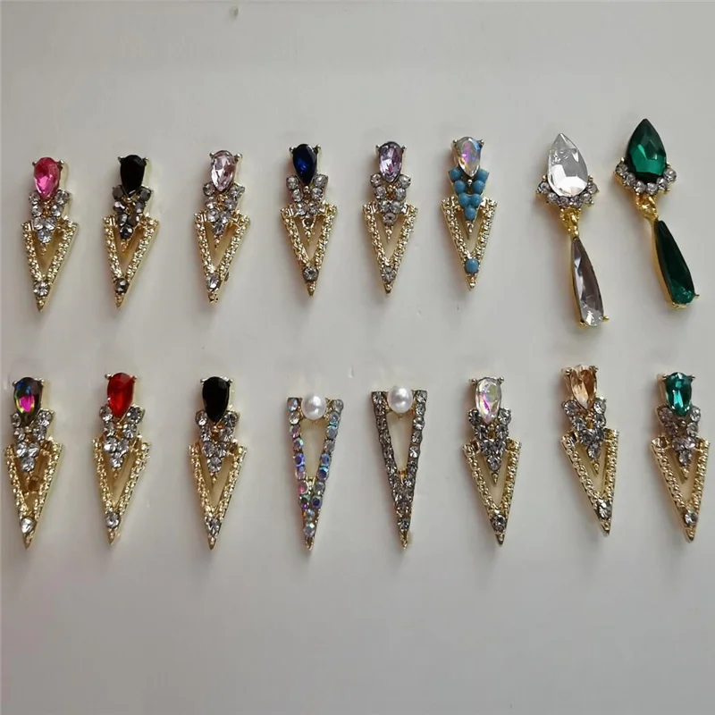 10 шт./лот, корейский стиль, Женский 3D сплав, кристалл, горный хрусталь, шарм, большой размер, треугольная подвеска, дизайн ногтей, ювелирные изделия, инструменты, CJE602-6345