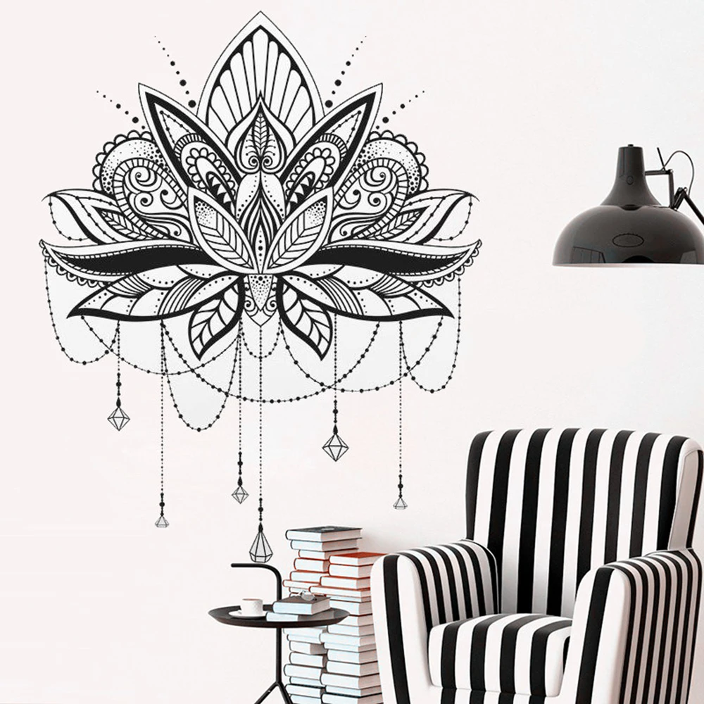 Wall Sticker Yoga Studio Decoration Mandala Lotus Pattern Lotus Design Mandala Decal Large Size Wall Murals Vinyl Wall Decals