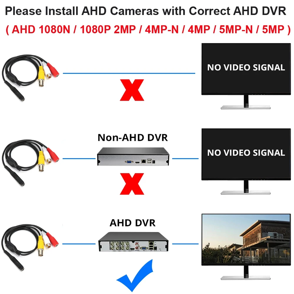 1. Мини-размер 2. AHD 1080P 2MP / 960P 1.3MP для дополнительного по ссылке SKU 3. BNC + аудио + тип питания 4. Адаптер питания 12 В (не входит в комплект)